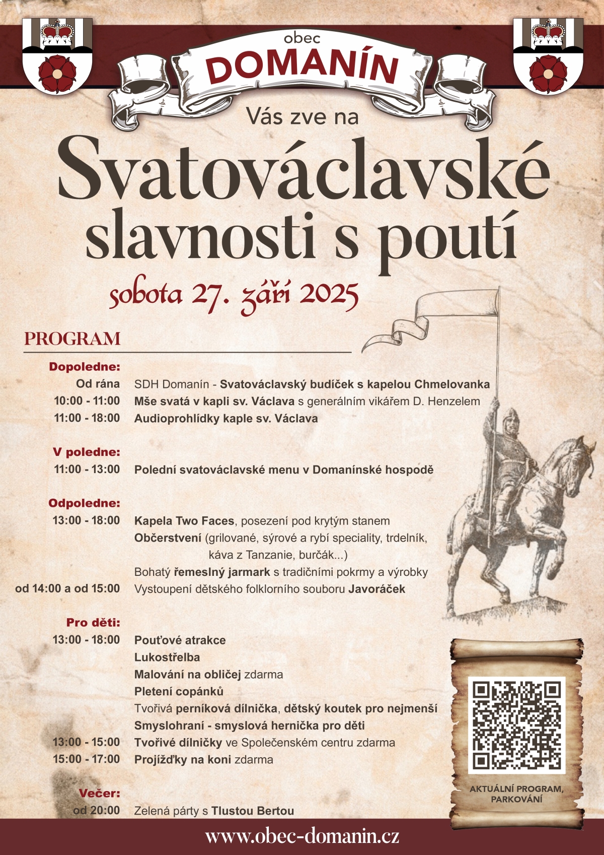 Svatováclavské slavnosti budou tradičně plné dobré muziky, se spoustou zábavy, bude tu mnoho zajímavého k vidění, ale i něco dobrého k jídlu a pití.